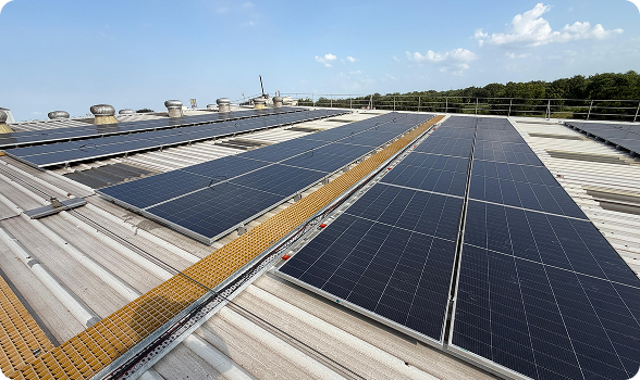 The plant is powered by high-efficiency solar modules, supported by two 125 kW inverters. Installed at an 8°–10° tilt angle on the plant building roof, the system is designed for optimal year-round performance with an expected Performance Ratio (PR) of 0.78–0.80 and a weekly cleaning schedule to maintain output.